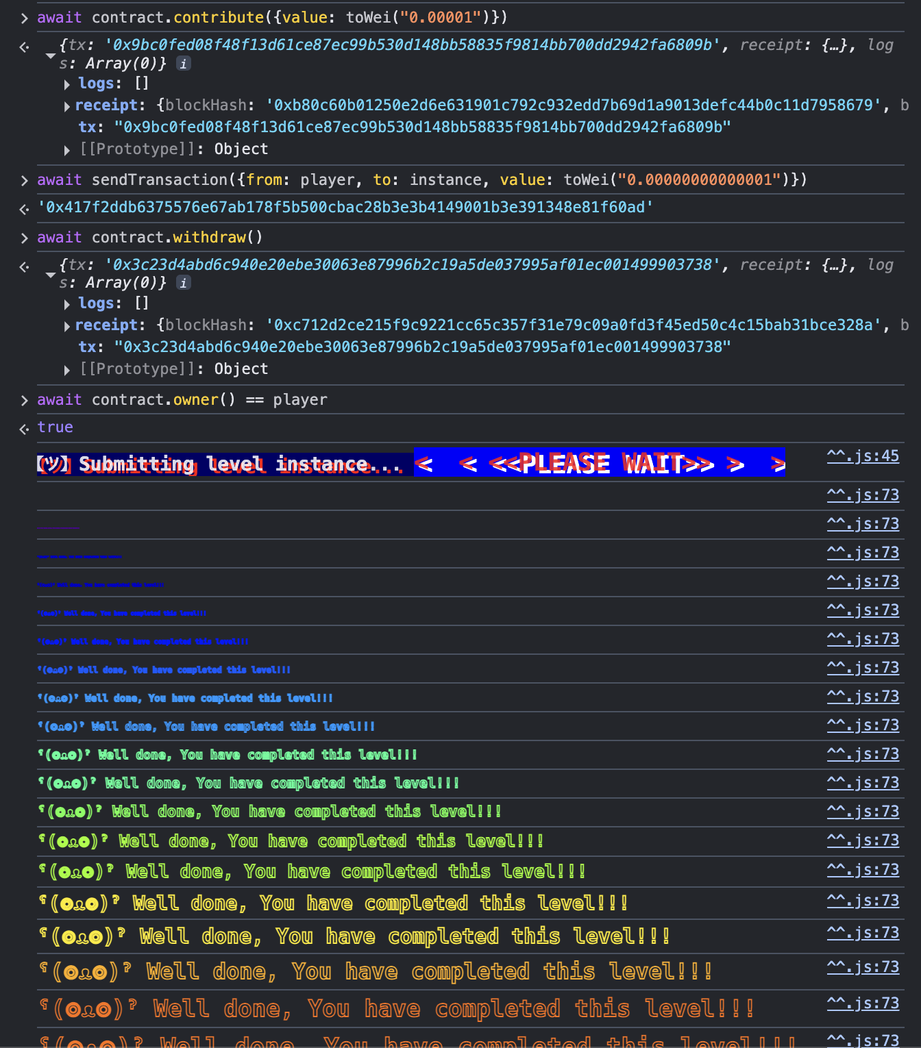단, 초기 owner의 기여도가 1000 ether라 사실상 이 조건을 넘기기 현실적으로 불가능에 가깝고, 실질적인 소유권 변경 경로는 receive() - function withdraw() public onlyOwner